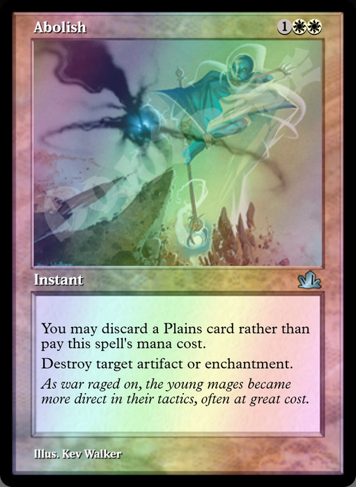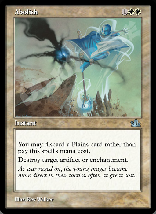 You may discard a Plains card rather than pay this spell's mana cost.Destroy target artifact or enchantment.