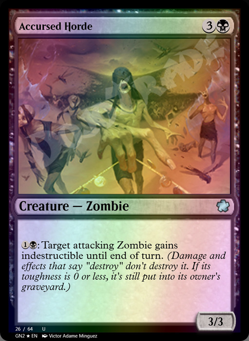 : Target attacking Zombie gains indestructible until end of turn. (Damage and effects that say "destroy" don't destroy it. If its toughness is 0 or less, it still dies.)