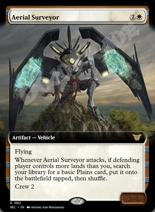 Whenever this Vehicle attacks, if defending player controls more lands than you, search your library for a basic Plains card, put it onto the battlefield tapped, then shuffle.