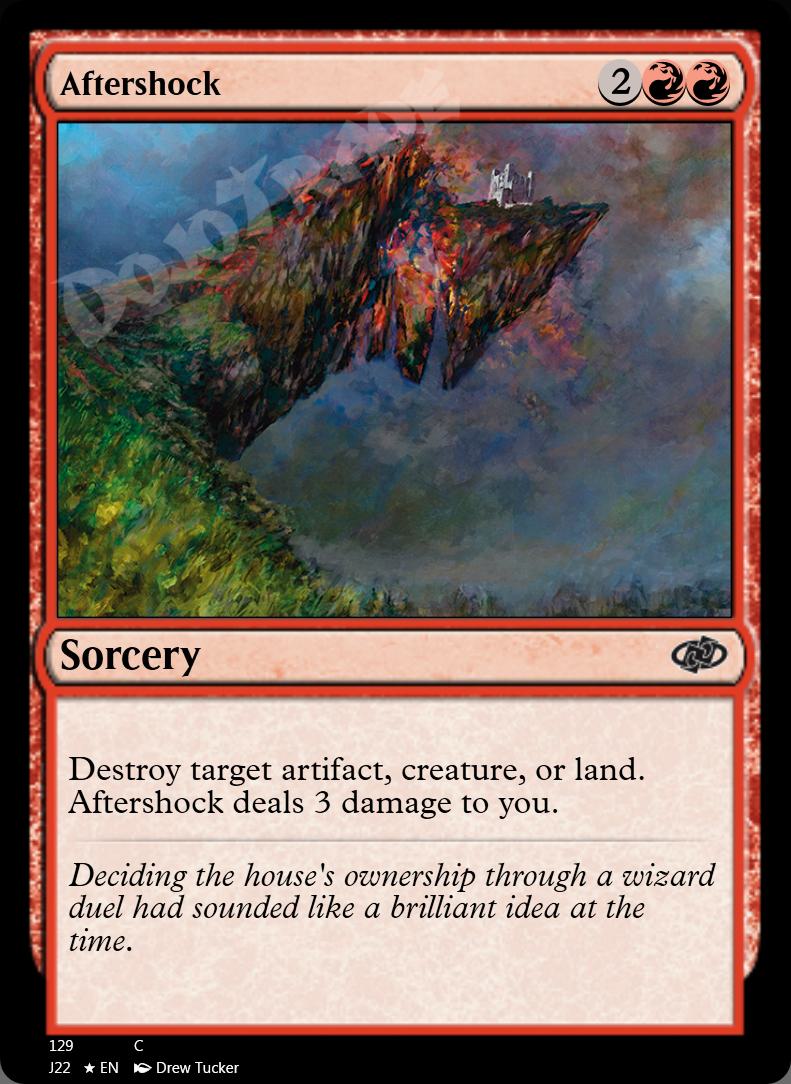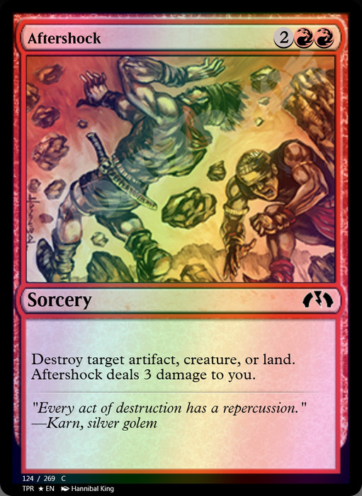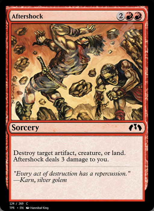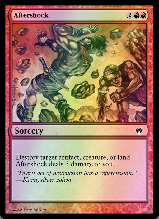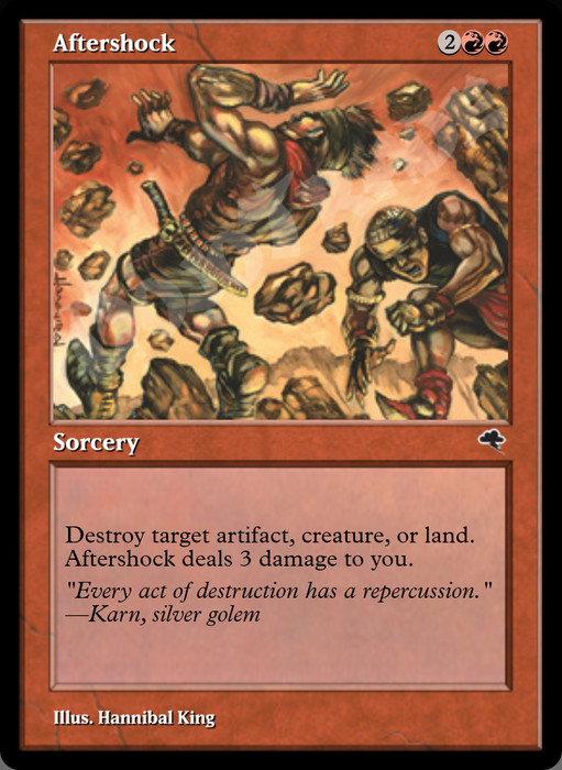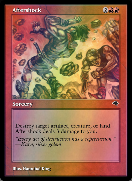 Destroy target artifact, creature, or land. Aftershock deals 3 damage to you.