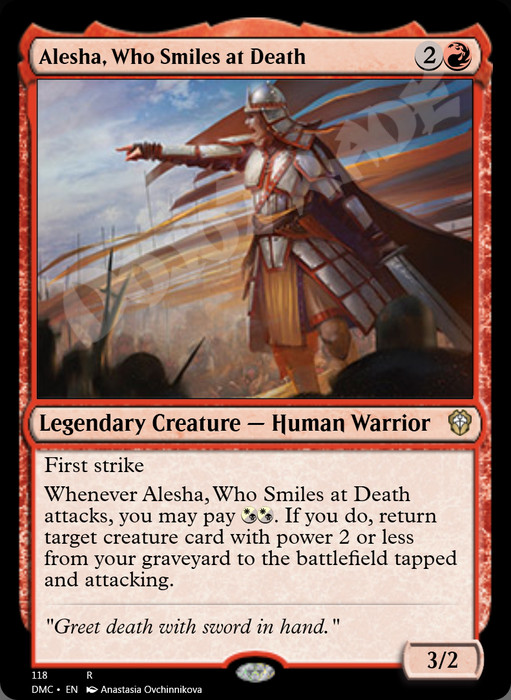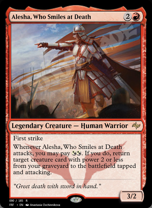 Whenever Alesha attacks, you may pay