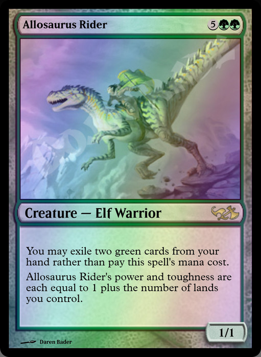 Allosaurus Rider's power and toughness are each equal to 1 plus the number of lands you control.