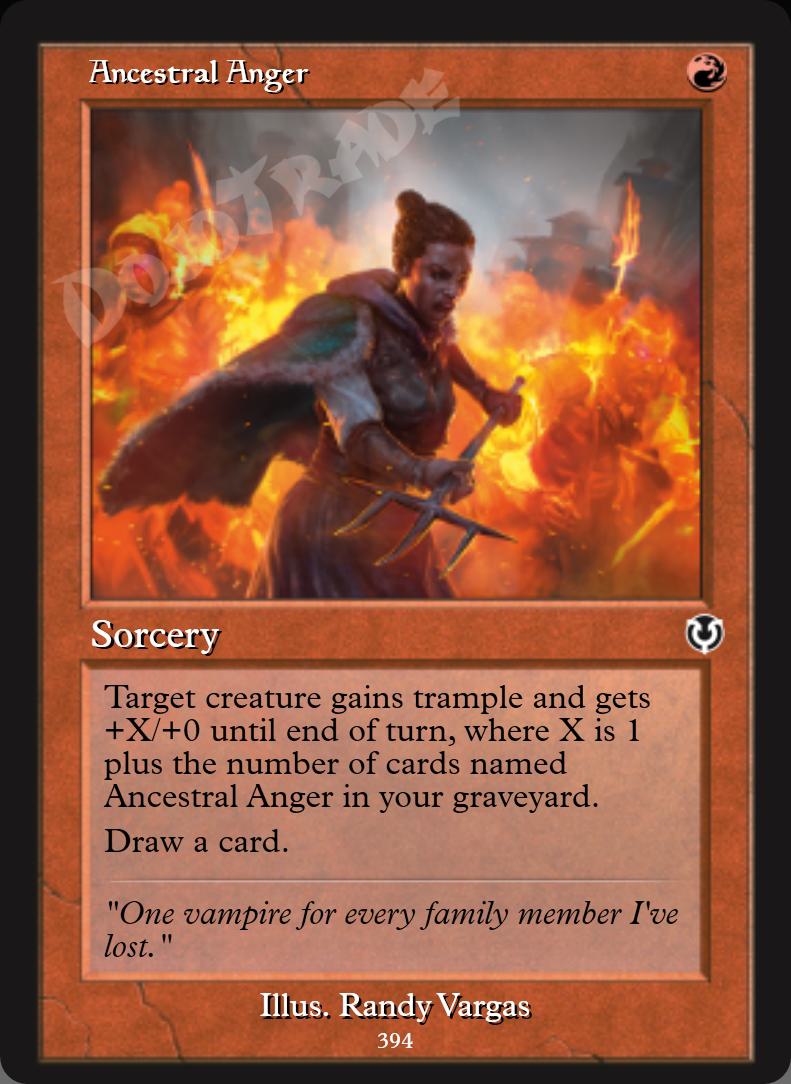 Target creature gains trample and gets +X/+0 until end of turn, where X is 1 plus the number of cards named Ancestral Anger in your graveyard.