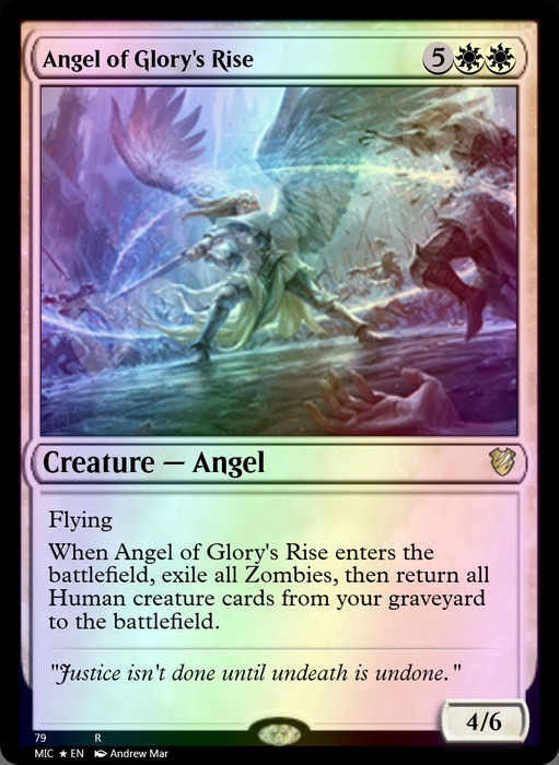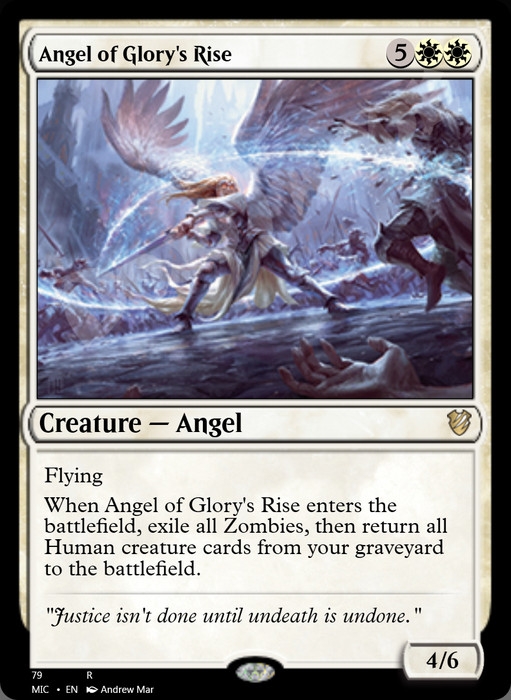 When this creature enters, exile all Zombies, then return all Human creature cards from your graveyard to the battlefield.