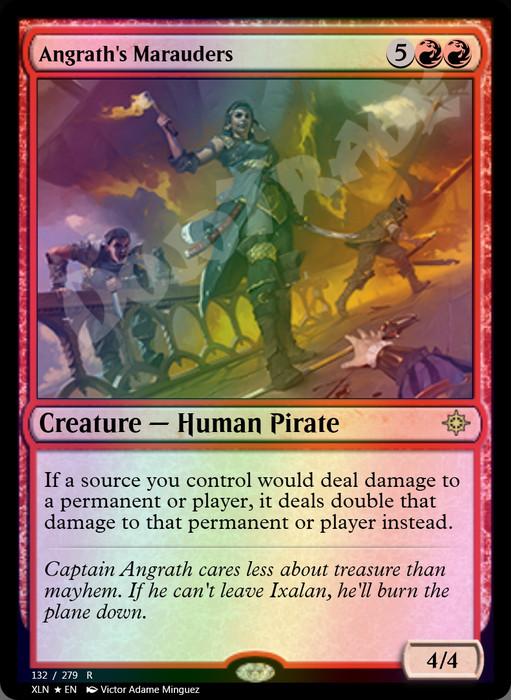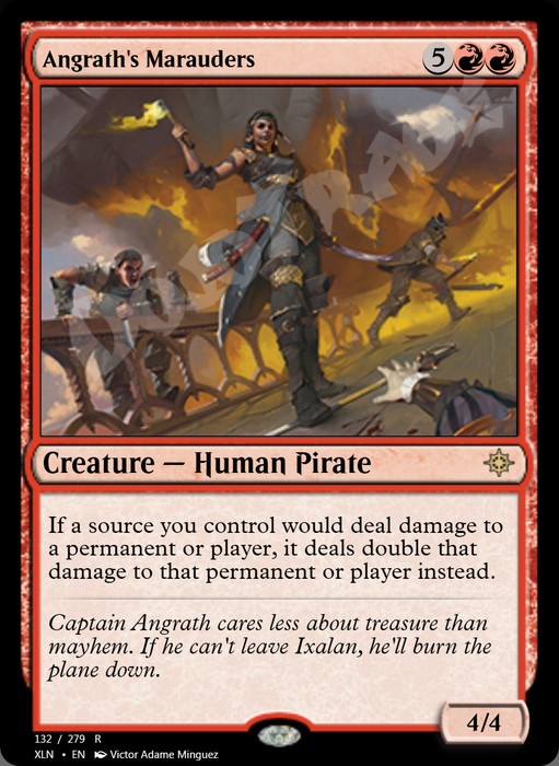 Captain Angrath cares less about treasure than mayhem. If he can't leave Ixalan, he'll burn the plane down.