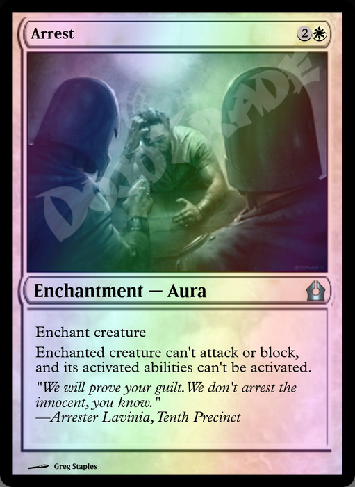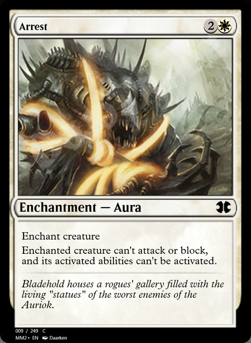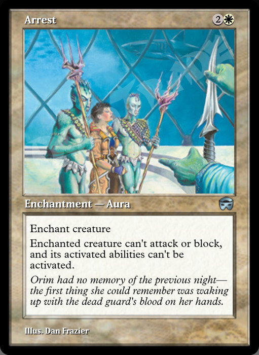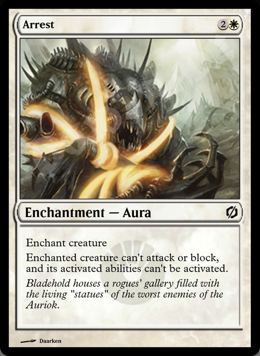 Enchanted creature can't attack or block, and its activated abilities can't be activated.