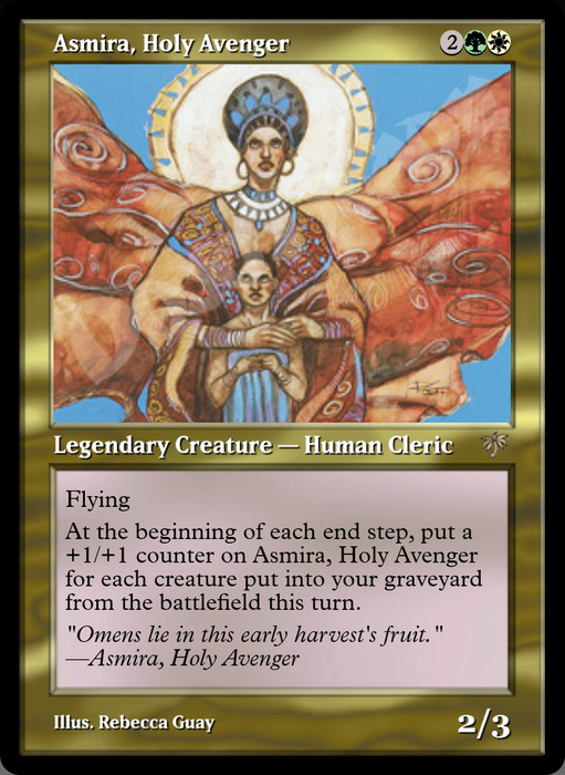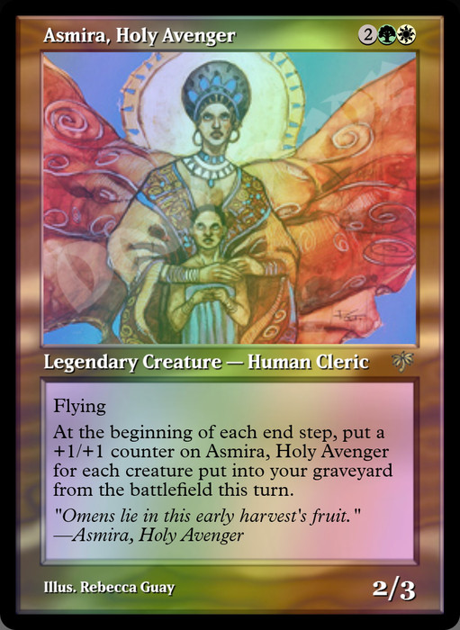 At the beginning of each end step, put a +1/+1 counter on Asmira for each creature put into your graveyard from the battlefield this turn.