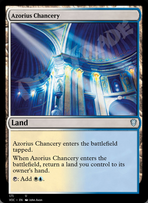 This land enters tapped.When this land enters, return a land you control to its owner's hand. : Add .