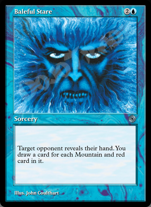 Target opponent reveals their hand. You draw a card for each Mountain and red card in it.