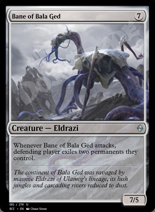 The continent of Bala Ged was ravaged by massive Eldrazi of Ulamog's lineage, its lush jungles and cascading rivers reduced to dust.