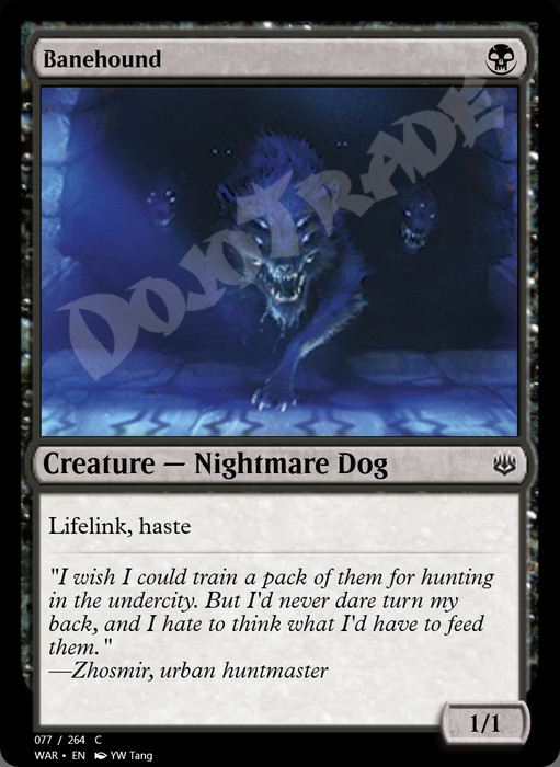 "I wish I could train a pack of them for hunting in the undercity. But I'd never dare turn my back, and I hate to think what I'd have to feed them."—Zhosmir, urban huntmaster