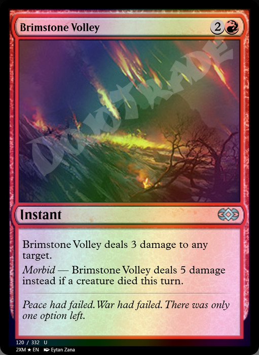 Morbid — Brimstone Volley deals 5 damage instead if a creature died this turn.