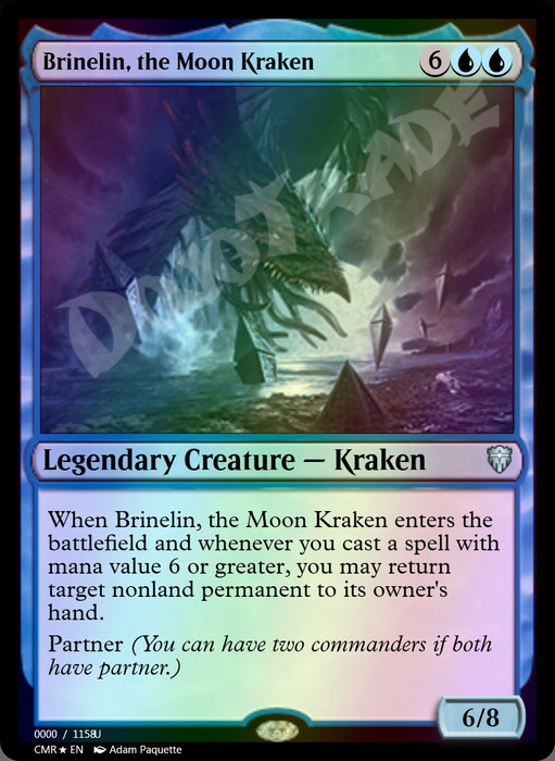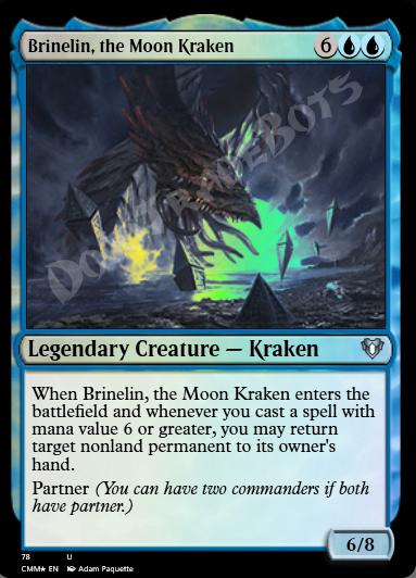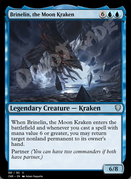 When Brinelin enters and whenever you cast a spell with mana value 6 or greater, you may return target nonland permanent to its owner's hand.