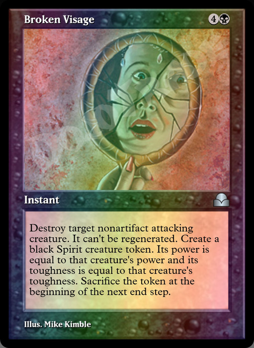 Destroy target nonartifact attacking creature. It can't be regenerated. Create a black Spirit creature token. Its power is equal to that creature's power and its toughness is equal to that creature's toughness. Sacrifice the token at the beginning of the next end step.