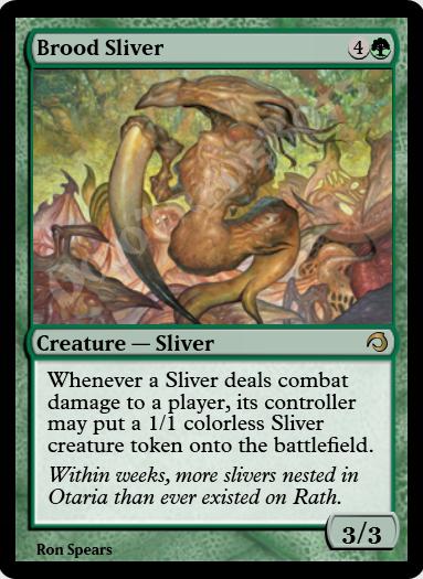 Whenever a Sliver deals combat damage to a player, its controller may create a 1/1 colorless Sliver creature token.