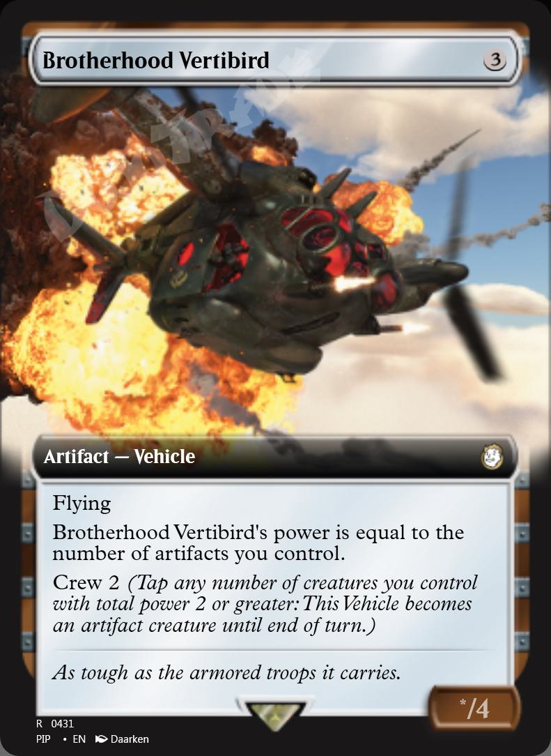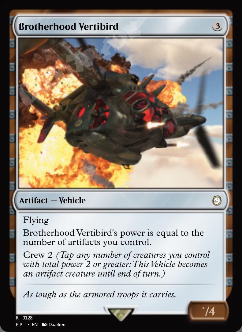 Brotherhood Vertibird's power is equal to the number of artifacts you control.