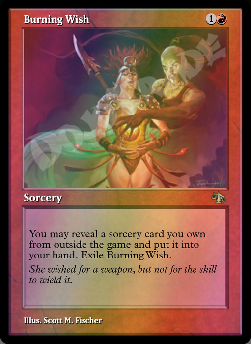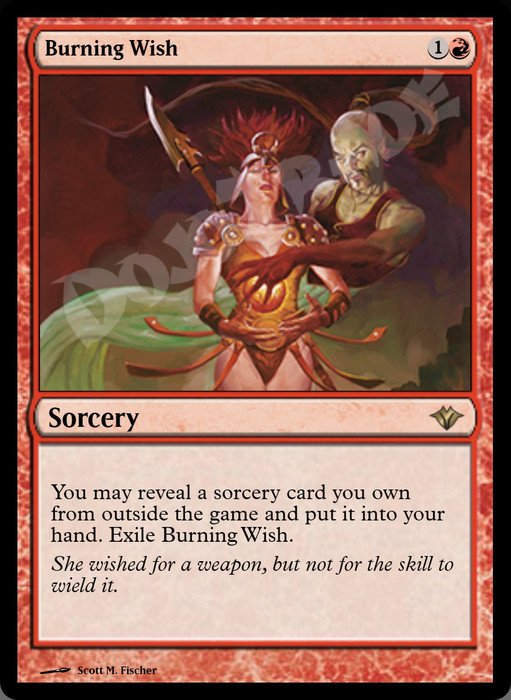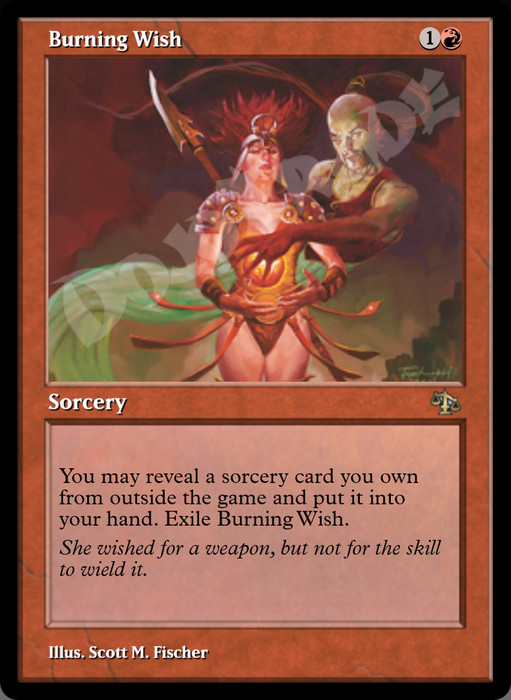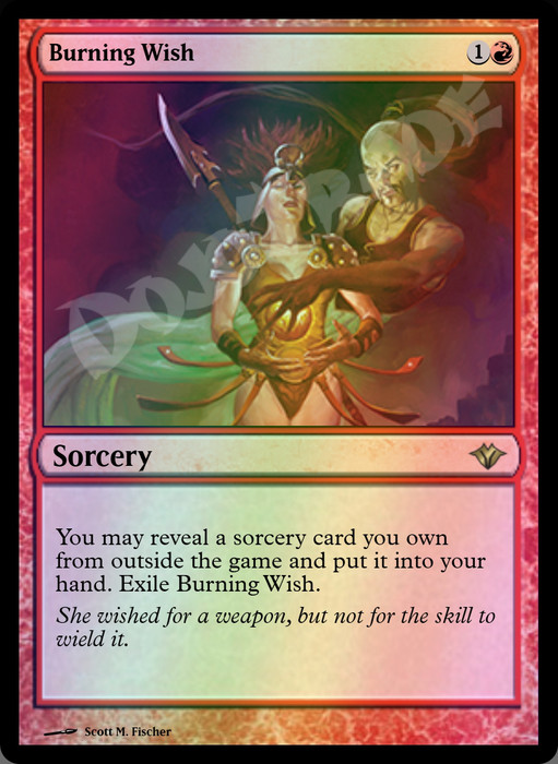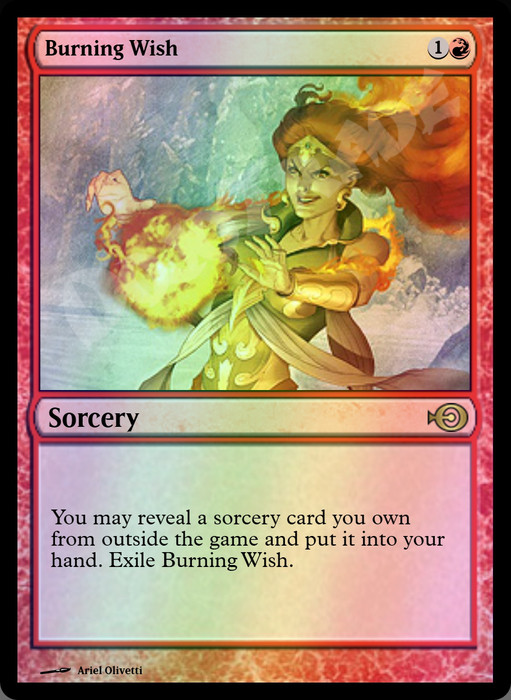 You may reveal a sorcery card you own from outside the game and put it into your hand. Exile Burning Wish.