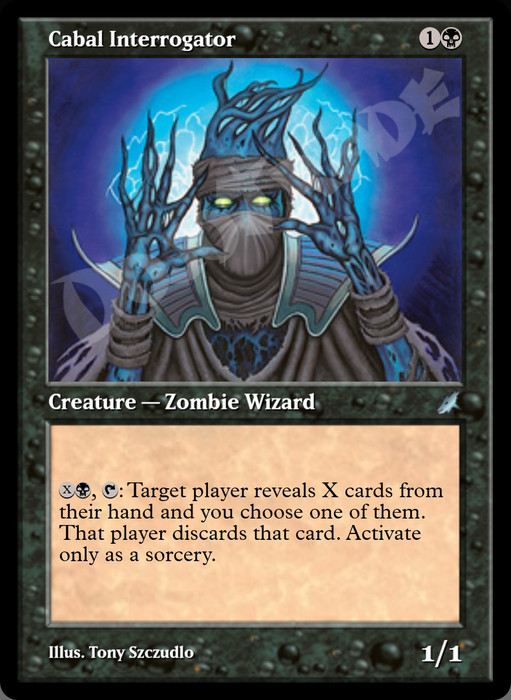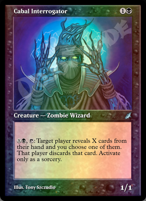 : Target player reveals X cards from their hand and you choose one of them. That player discards that card. Activate only as a sorcery.