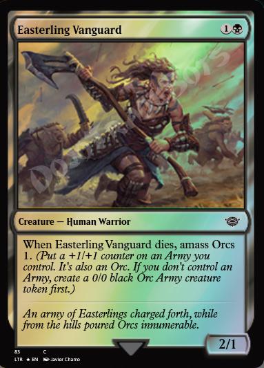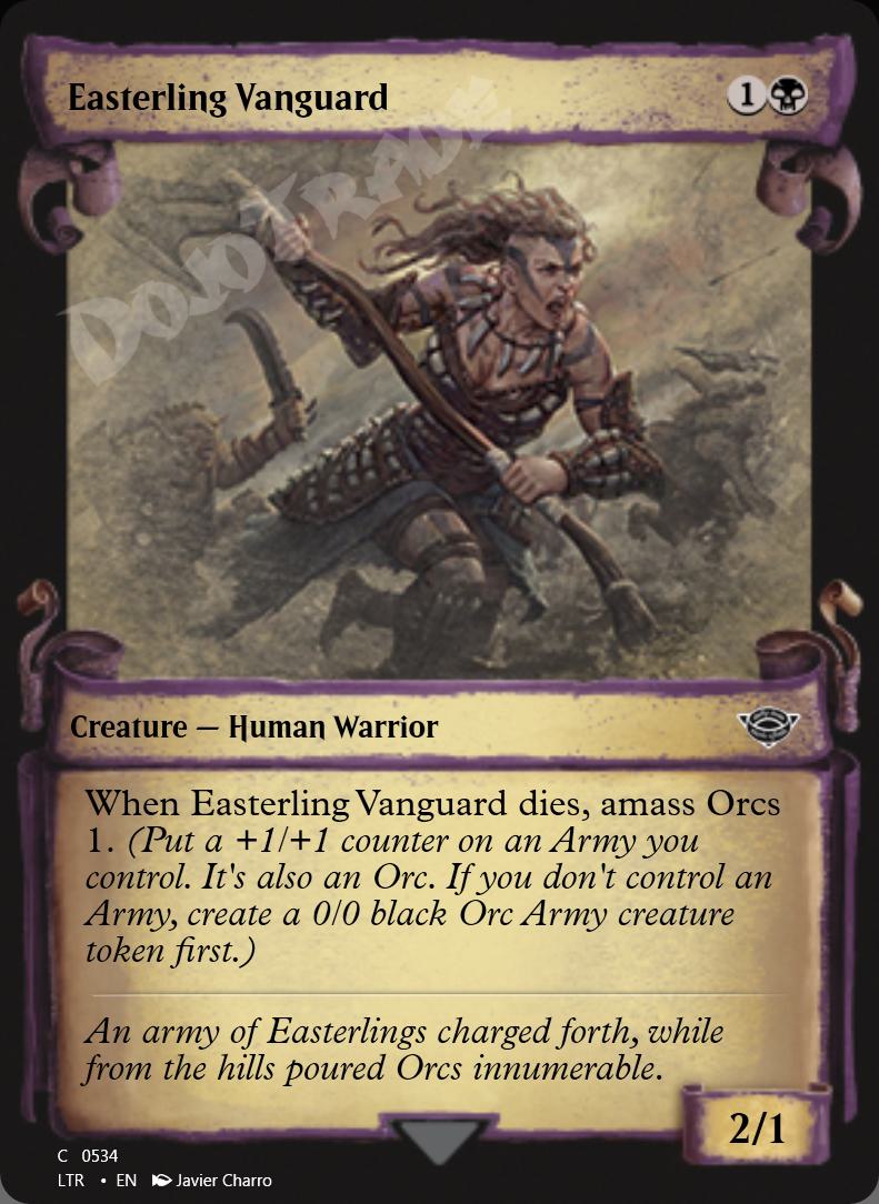 When this creature dies, amass Orcs 1. (Put a +1/+1 counter on an Army you control. It's also an Orc. If you don't control an Army, create a 0/0 black Orc Army creature token first.)