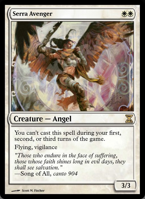 You can't cast Serra Avenger during your first, second, or third turns of the game.