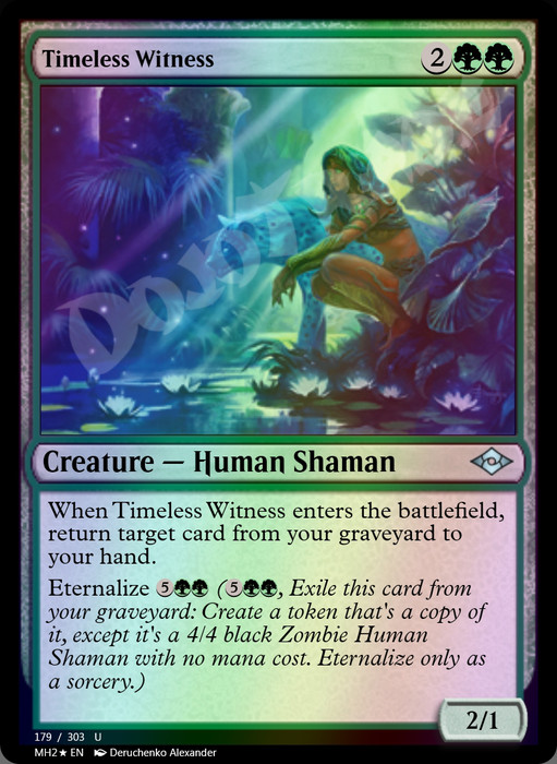 , Exile this card from your graveyard: Create a token that's a copy of it, except it's a 4/4 black Zombie Human Shaman with no mana cost. Eternalize only as a sorcery.)